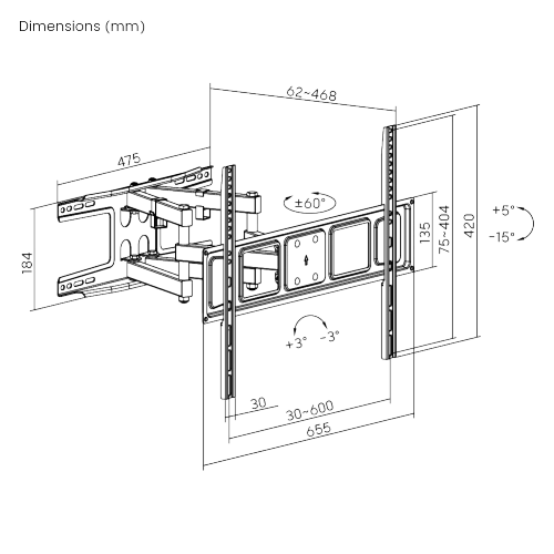 | VESA Standards | 200 x 200mm, 300 x 300mm, 400 x 200mm, 400 x 400mm, 600 x 400mm |