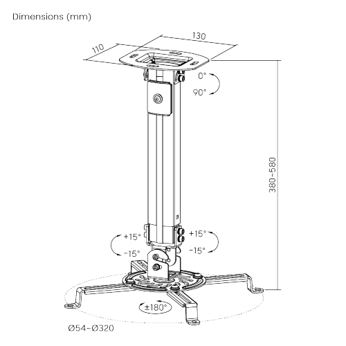 | Mounting Range: | 54~320mm (2.1″~12.6″) |