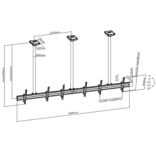 Protech Triple Screen 40″ to 55″ Video Wall /Menu Board wall mount with optional Ceiling Mount to hang from ceiling or Mount on the wall. This Mount comes with both hardware kits for installation.