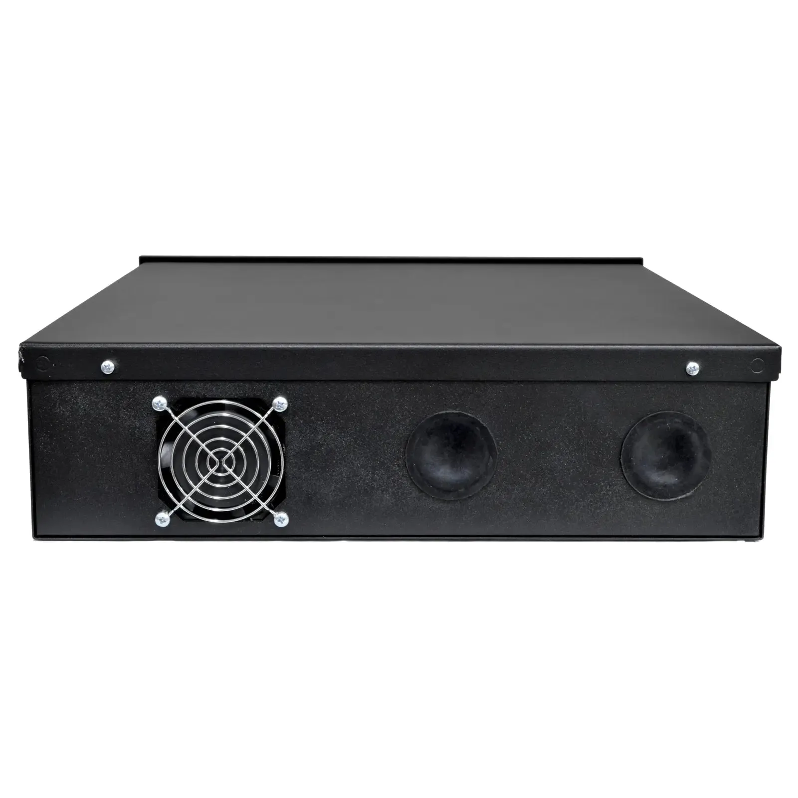 This robust security lock box is designed to safeguard DVRs, VCRs, and other similar electronic devices. Crafted from sturdy 16 gauge steel, it offers durability and protection against tampering. The lockable door ensures the safety of your equipment. Additionally, it includes a built-in fan to effectively cool down the temperature and prevent overheating of your devices.