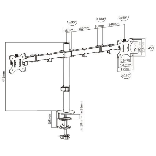 | Swivel Angle | +90° to -90° |
