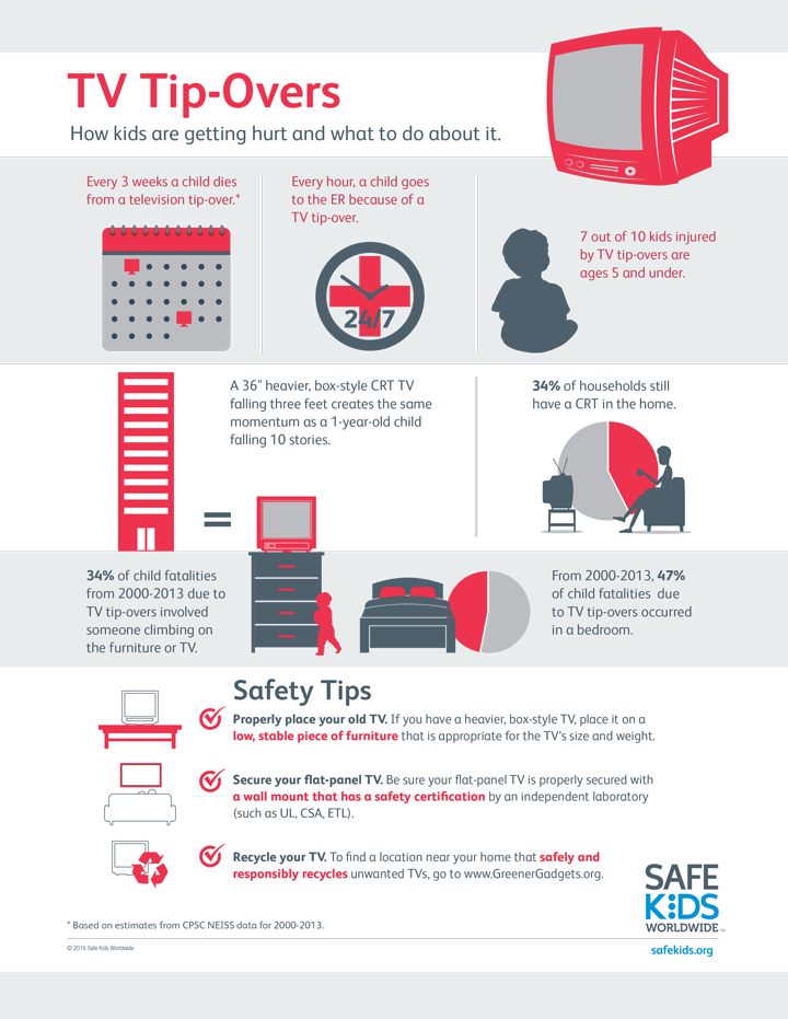- On average, one child dies every two weeks when a TV or furniture falls onto him or her.